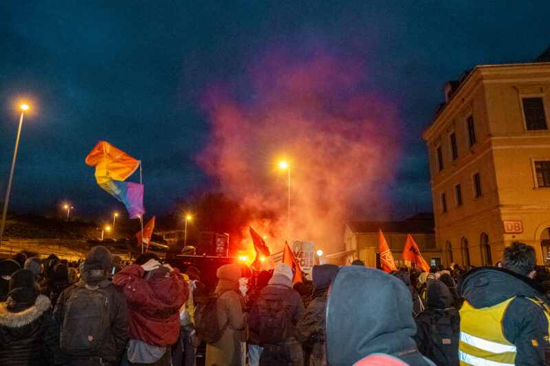 Riesa | 11. Janaur 2025 – Es ist früh am Morgen, als sich die ersten Demonstrant:innen am Leipziger Hauptbahnhof versammeln. Die Regionalbahn nach Riesa ist brechend voll, kein Platz bleibt ungenutzt. Trotz der frühen Stunde ist die Stimmung gelöst, die meist jungen Menschen wirken erstaunlich gut ausgeschlafen und bestens gelaunt. Sie alle haben ein Ziel, gegen den Bundesparteitag der AfD in der sächsischen Stadt zu protestieren.
